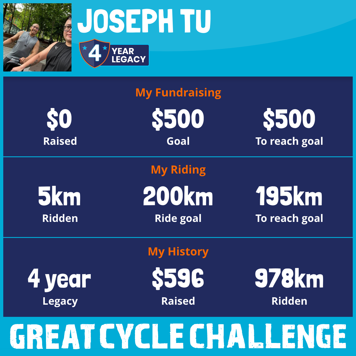 I am riding 200 km in memory of my friend, Dean Mary. Please sponsor me and support my challenge to fight kids' cancer and save little lives.