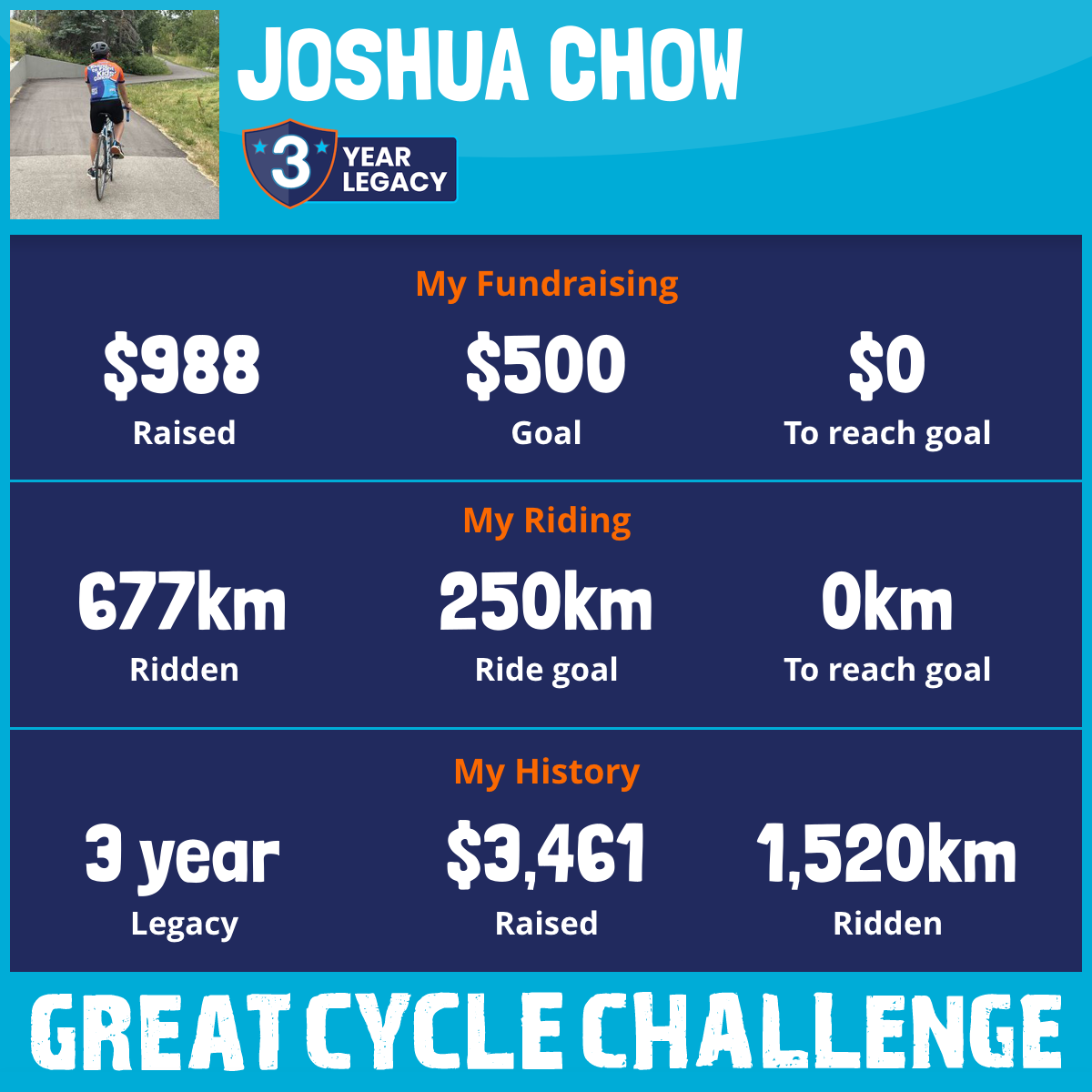This year is my 3rd year participating in the Great Cycle Challenge to help fight kids' cancer!