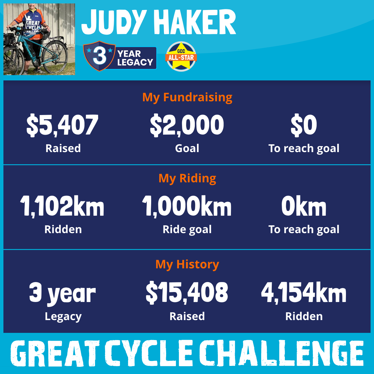 1,102 km Ridden$5,407 Raised2025