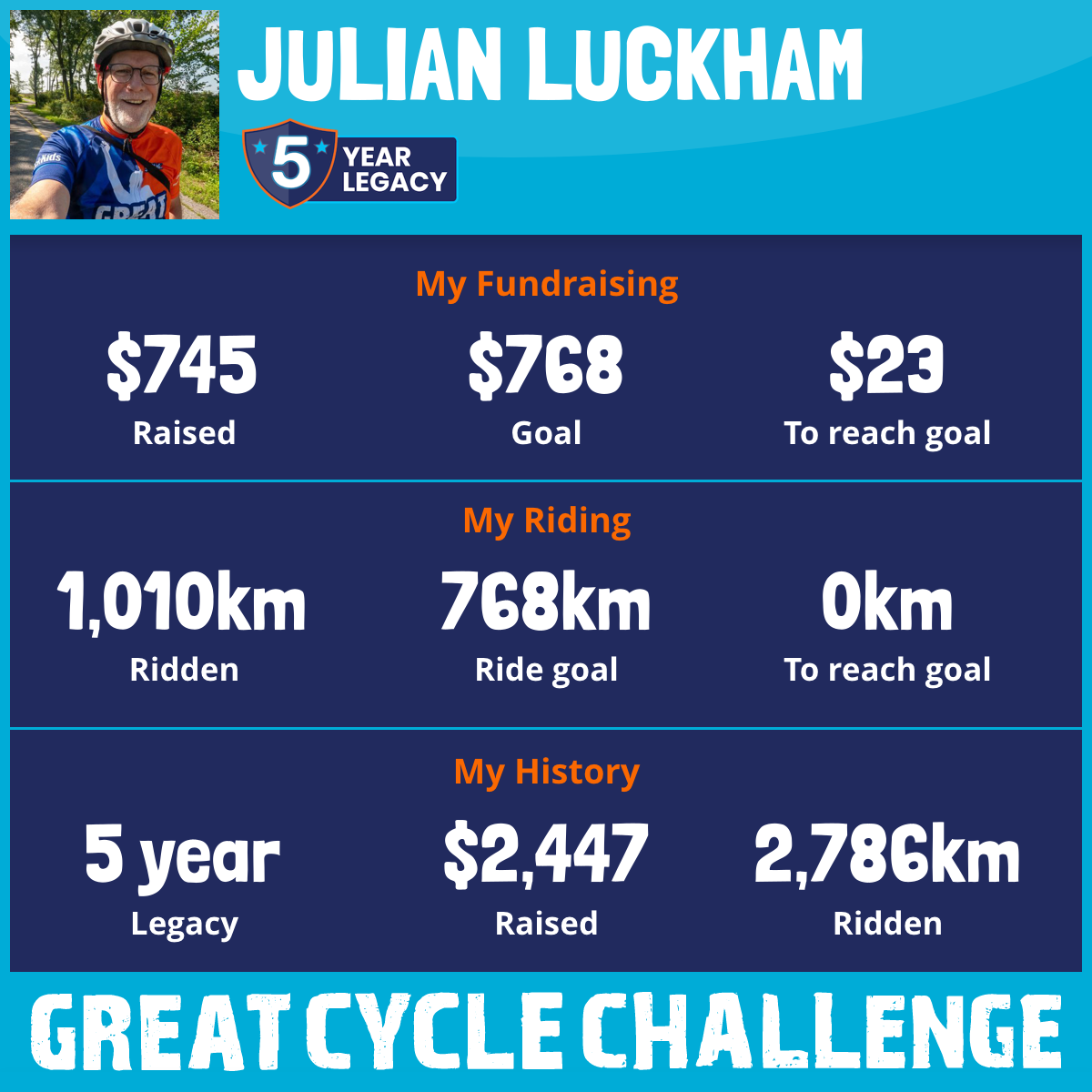 My riding for this year’s Challenge is over, but it's been decided to leave our donation pages open until the end of October, so if you have not donated yet I hope you will. My revised distance goal of 768 kms was met after my 27th ride, but I didn't put my riding goal up, I just kept riding, and by my 31st day I reached 1,010 km! That’s 2 more than I rode in 2019, my first year doing this challenge, back then I was trying to match my fundraising to my riding, so $1 for every kilometre I rode, I never made it, and even on my 2024 ride I never achieved that goal. This year I made my revised fundraising goal of $768 after my last ride, and again I didn’t raise my goal but in the back of my mind I kept hoping I’d meet that unannounced goal of $1 for every kilometre. Okay, yes I did hint at it… maybe more than once, but I didn’t make it official. Then 6 days later, it happened, the last donation took me over the top and I reached $1,018! 11 days later and it’s still at $1,018 but as I said there are 7 days left. I have no goal at this point, I’d just like to push it higher so I have something to reach for next year when I will do this challenge again! I hope you will help me out and set a new goal for my 2026 ride. I love cycling and I love that I can use it to raise funds to help children in their fight against cancer, the largest killer of children from disease in Canada. If you know me, you know I prefer to participate in fundraisers related to kids. My profile shows a 5 year legacy, but it's really only 2, this year is my 3rd time doing this ride and so far I’ve raised $2,720 for SickKids Foundation.