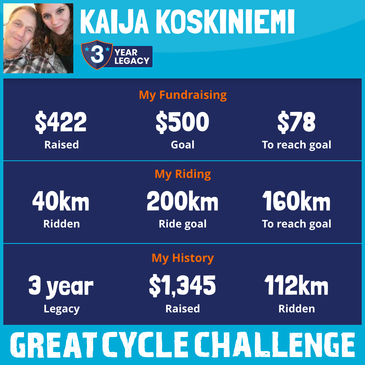 This August, Brenden and I are taking part in the Great Cycle Challenge to fight kids' cancer!