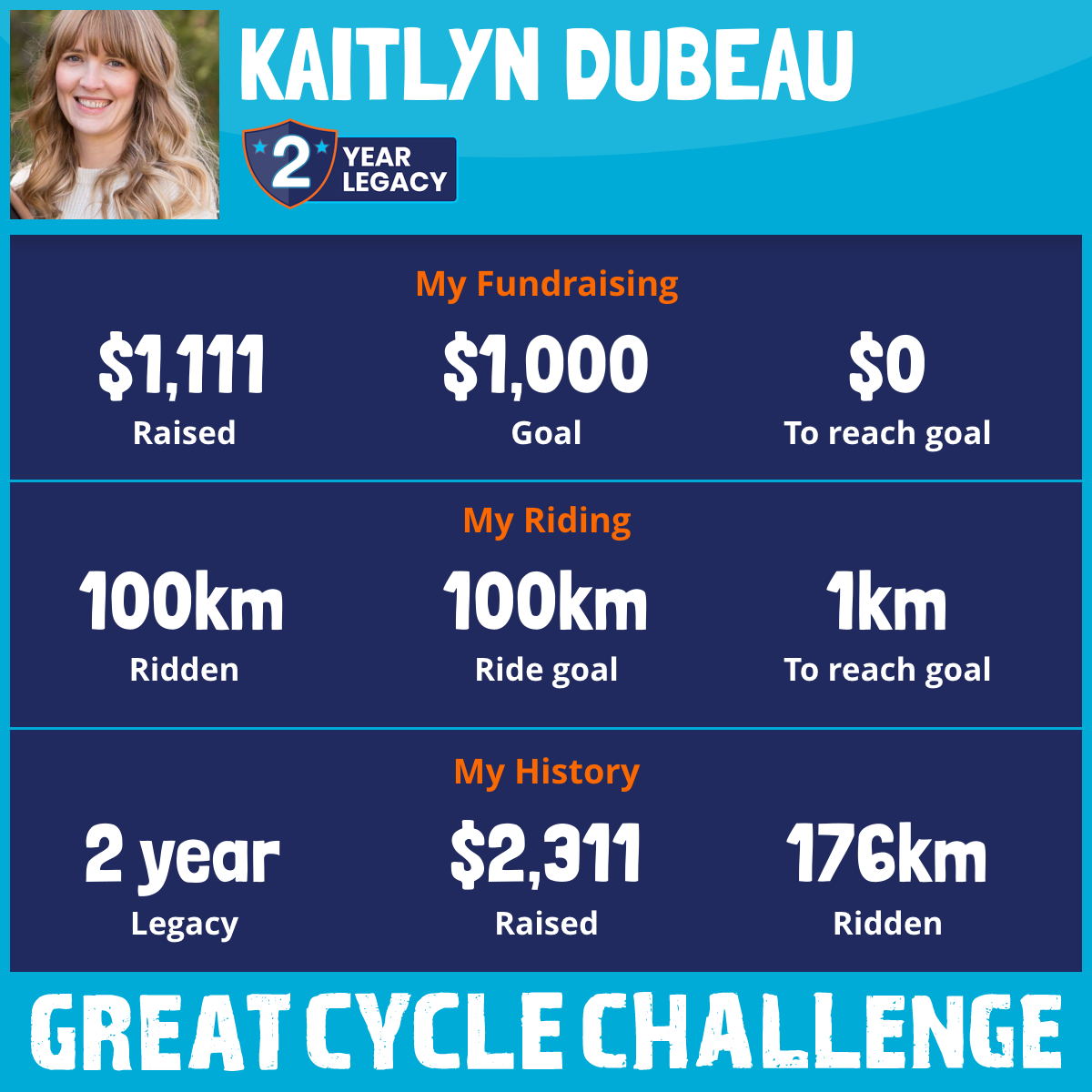 100 km Ridden$1,111 Raised2025