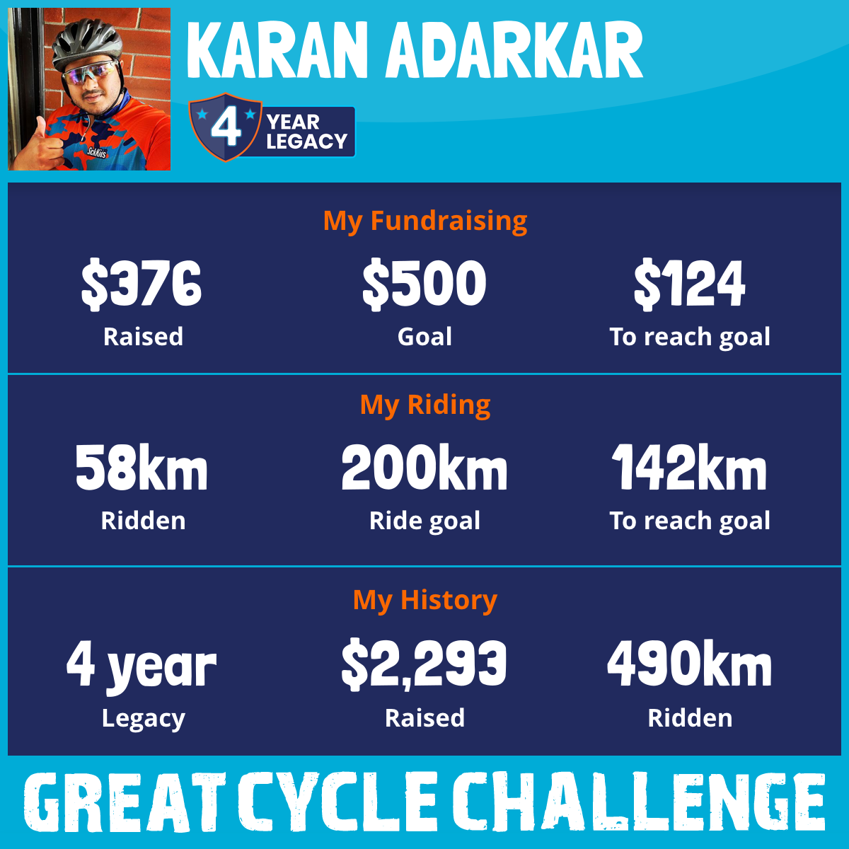 I am riding 200 km in memory of my loved one, Chitra Adarkar & Kunal Apte. Please sponsor me and support my challenge to fight kids' cancer and save little lives.