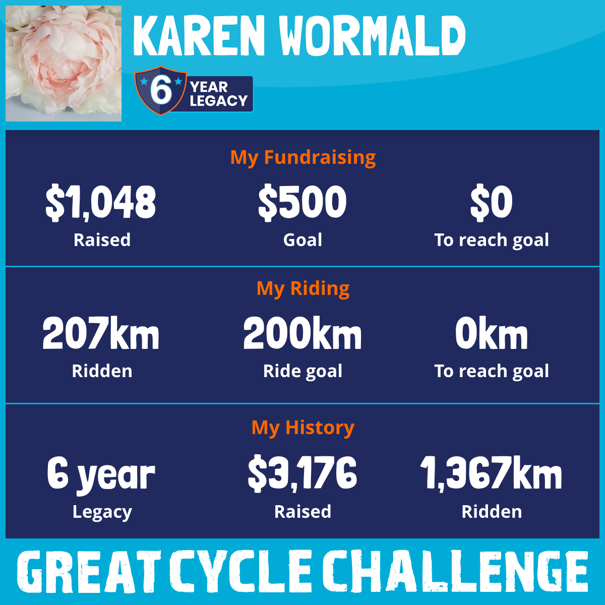 207 km Ridden$1,048 Raised2025