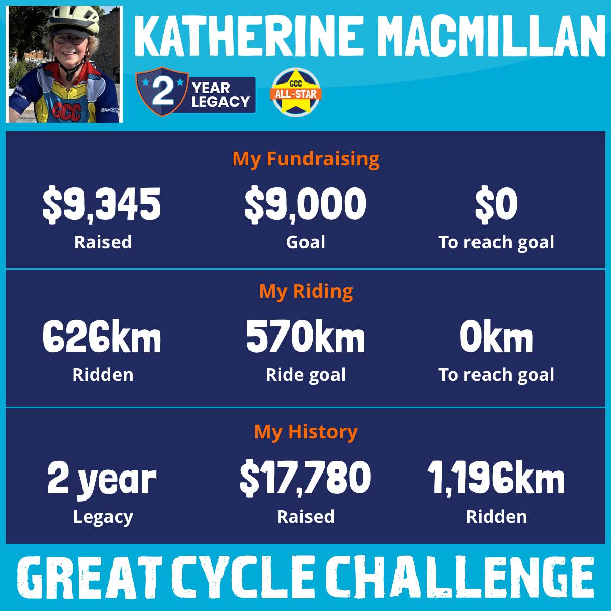 This August, I am again taking part in the Great Cycle Challenge to fight kids' cancer!