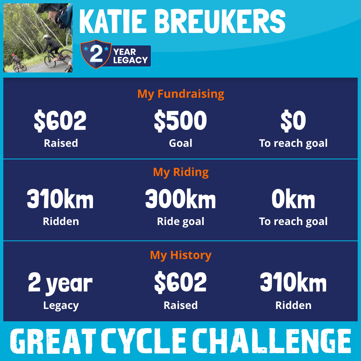 310 km Ridden$602 Raised2025