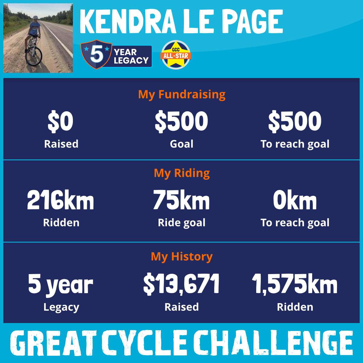 505 km Ridden$5,223 Raised2022