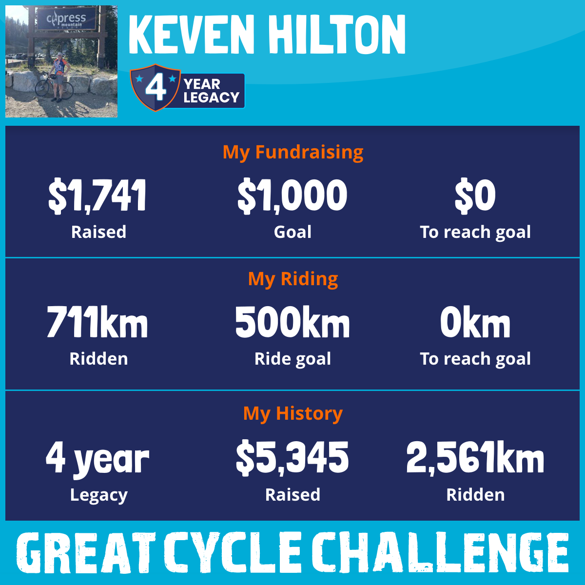 711 km Ridden$1,741 Raised2025