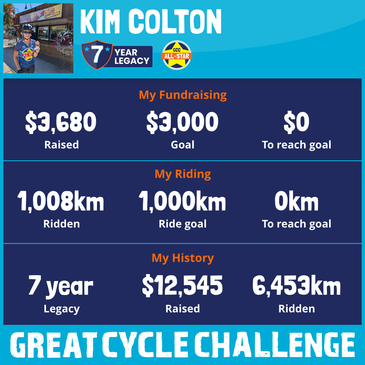 This August will be my 7th year raising funds for Kids Cancer through the Great Cycle Challenge!