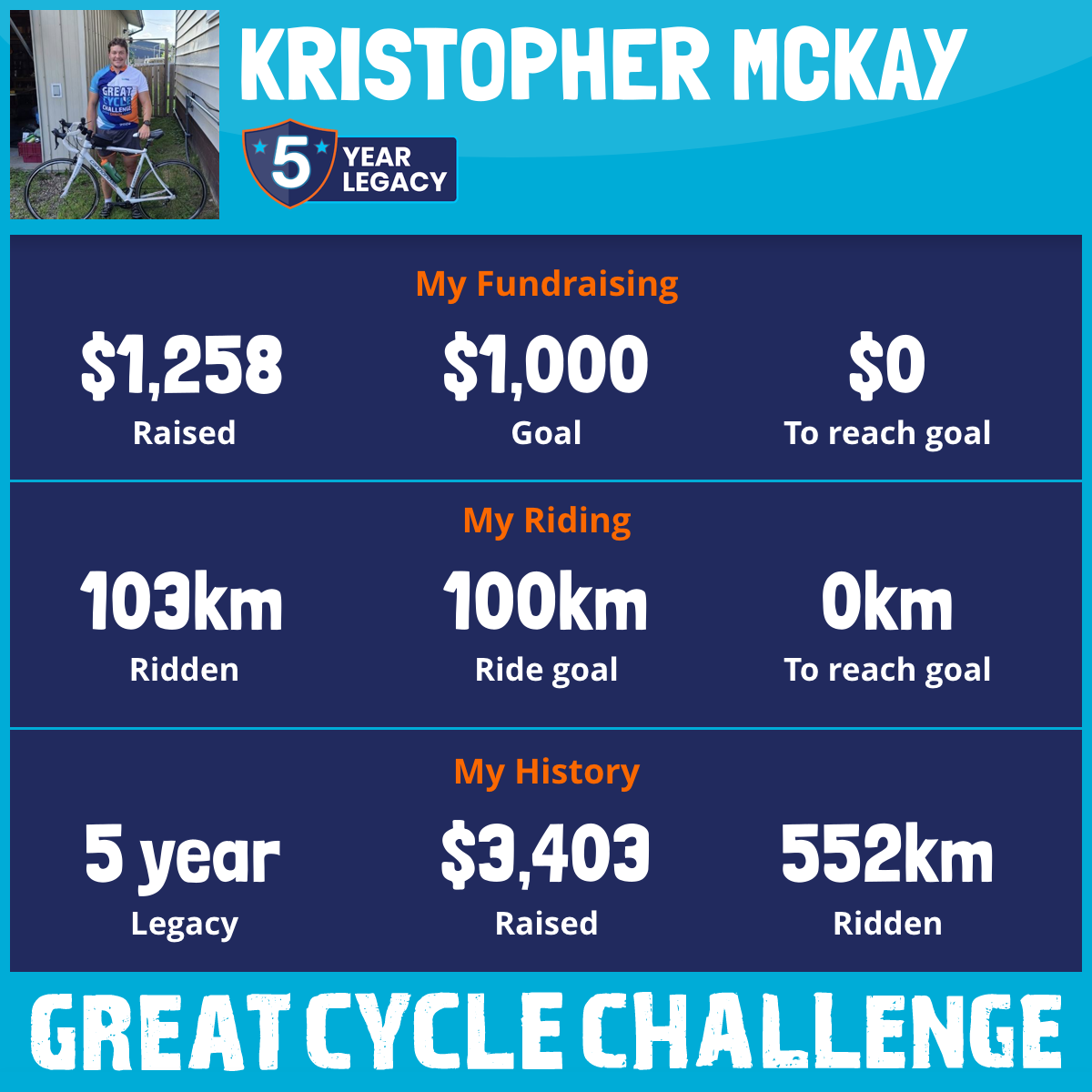 103 km Ridden$1,395 Raised2025