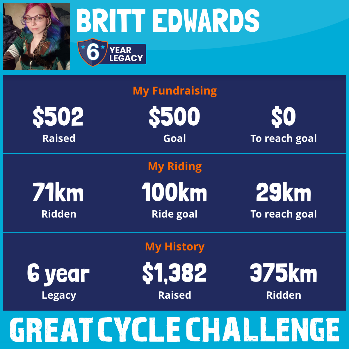 223 km Ridden$502 Raised2025