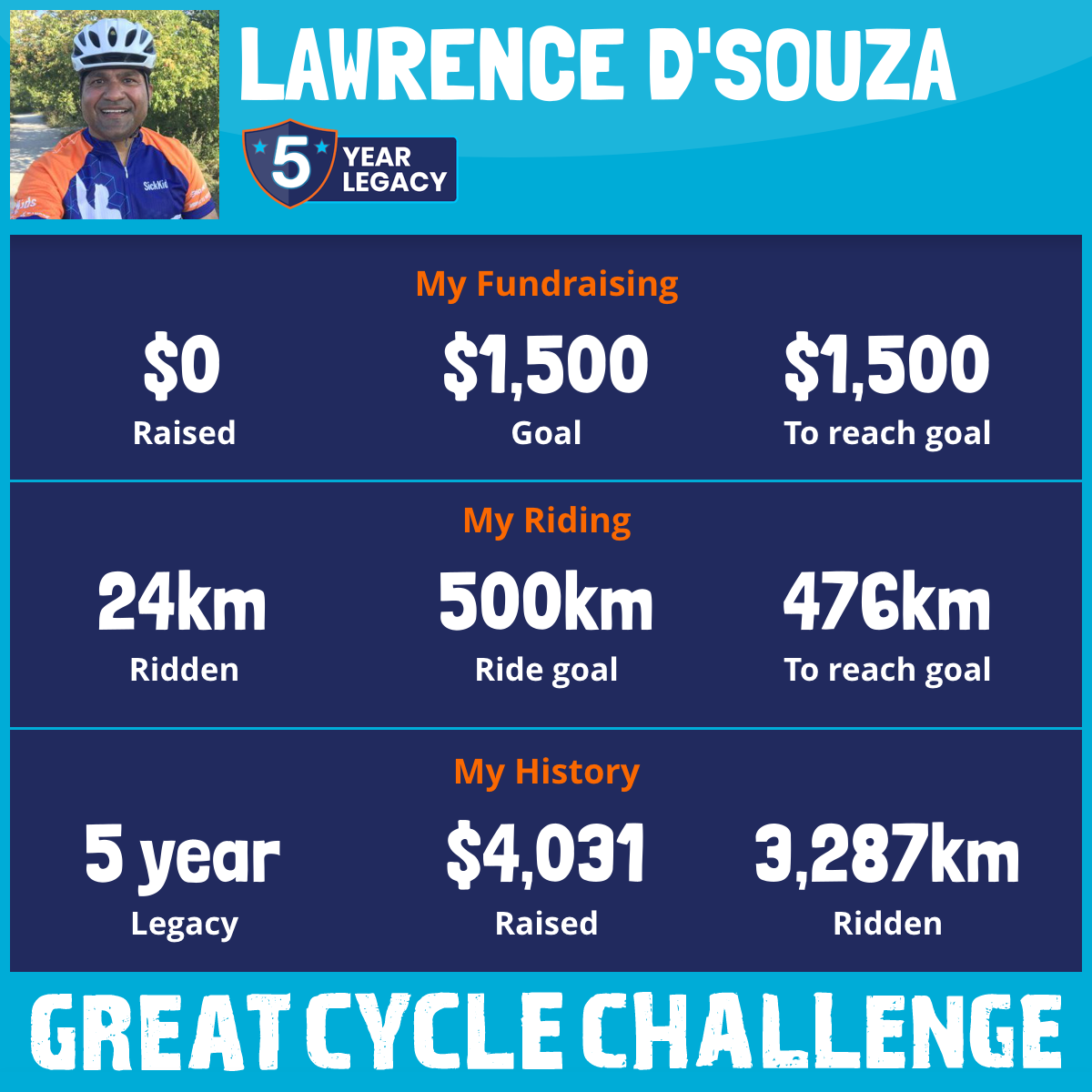 I am riding 500 km for my loved one, Ashwini Martin. Please sponsor me and support my challenge to fight kids' cancer and save little lives.