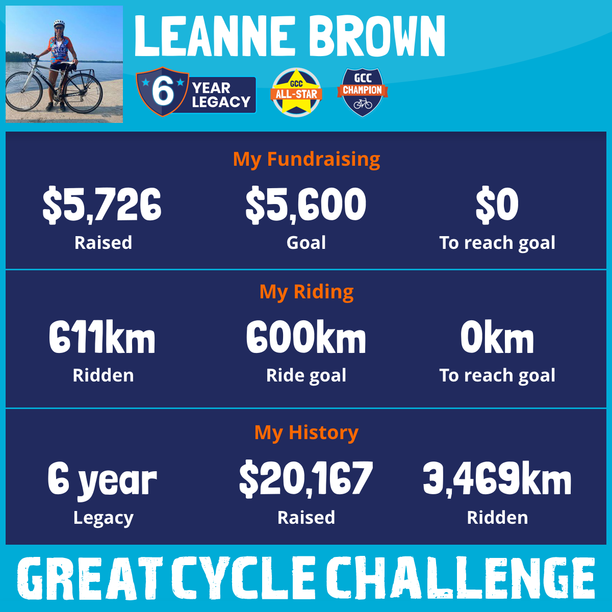 629 km Ridden$5,726 Raised2025