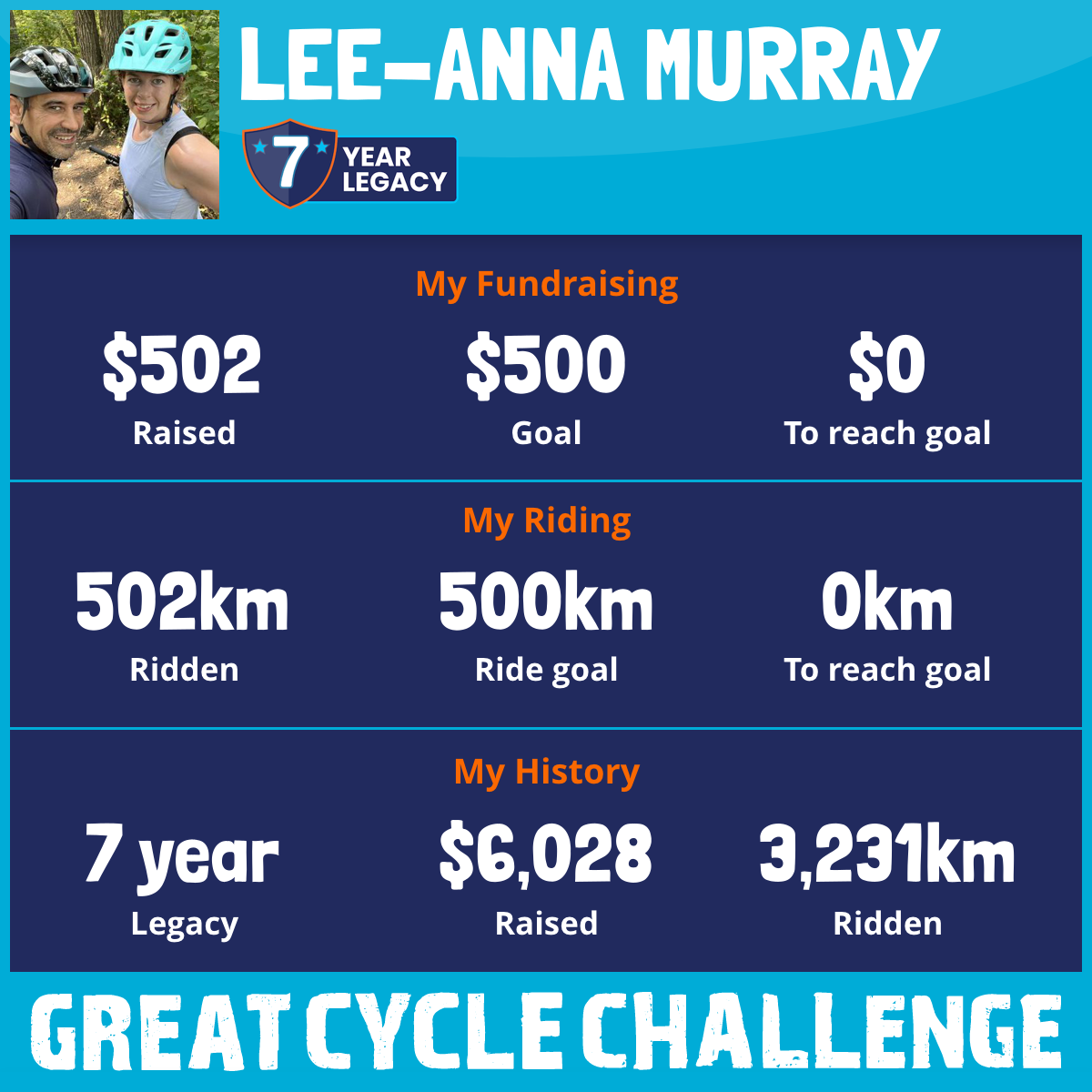 522 km Ridden$1,121 Raised2023
