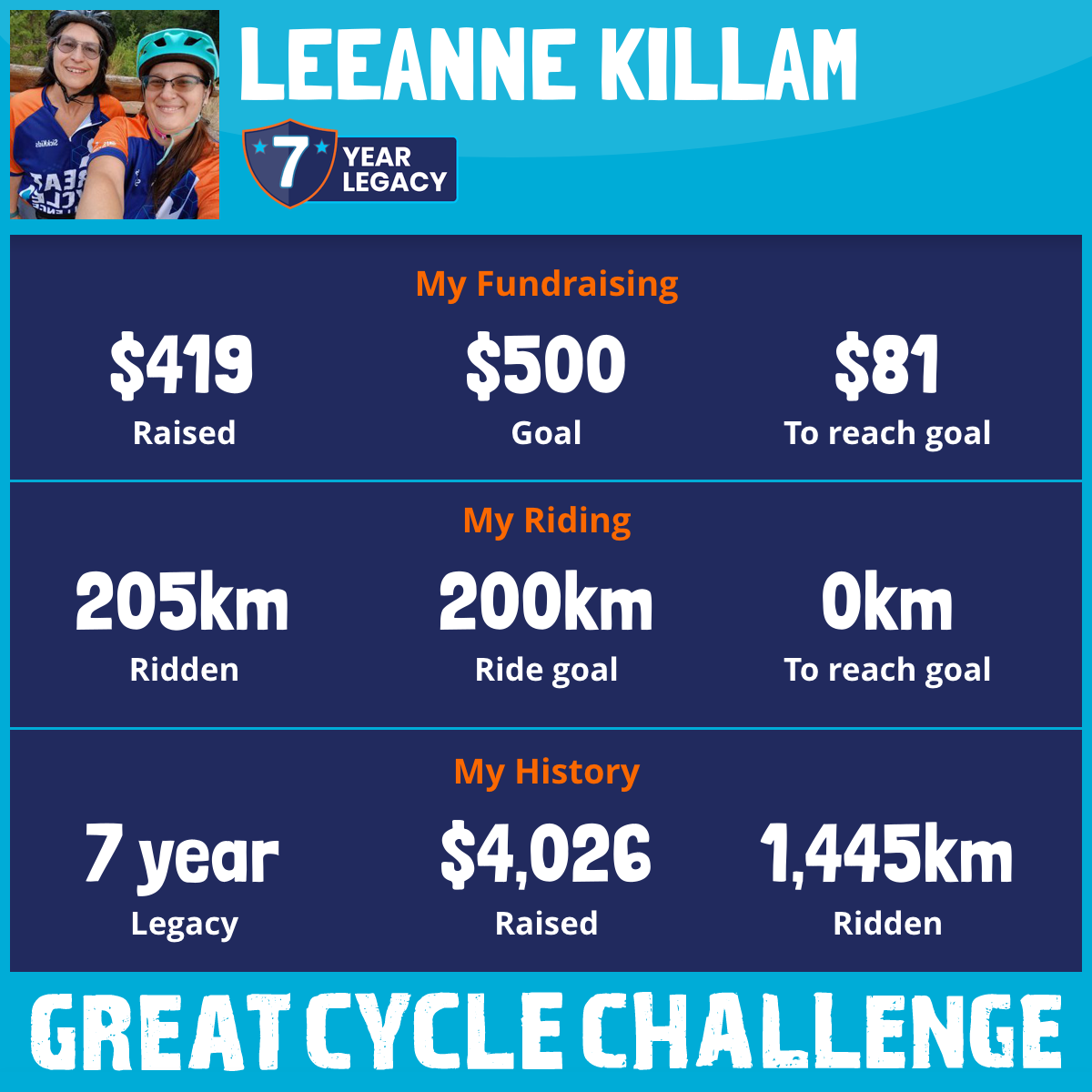 205 km Ridden$419 Raised2025