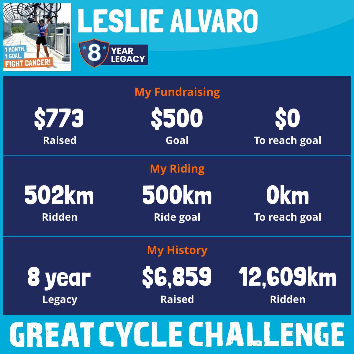1,323 km Ridden$839 Raised2020