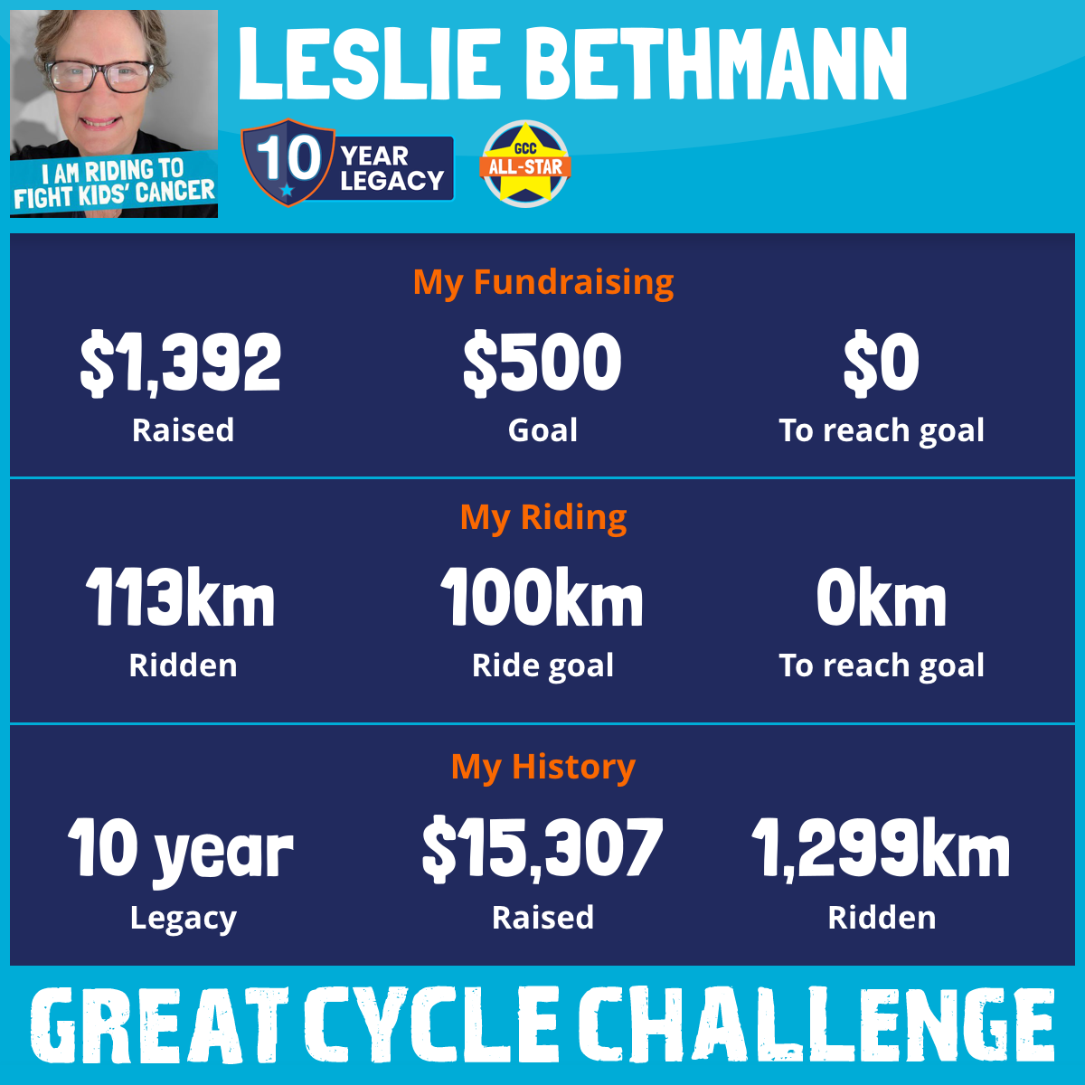 This August, I am taking part in the Great Cycle Challenge to fight kids' cancer! This is my 10 th year in a row riding to fight kids cancer!