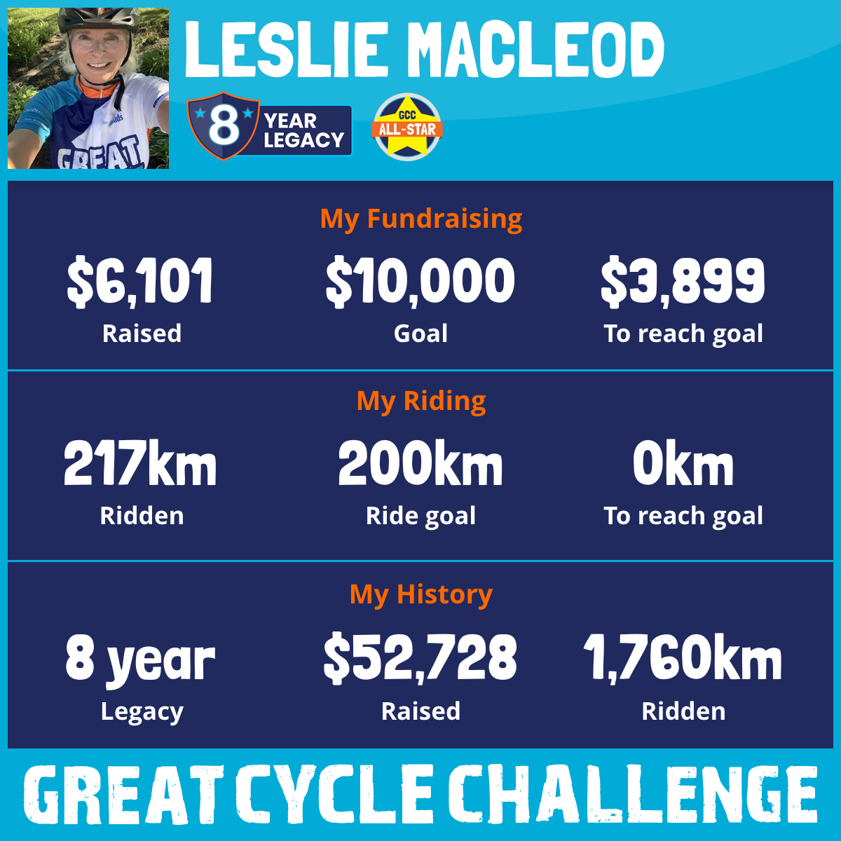 182 km Ridden$6,128 Raised2024