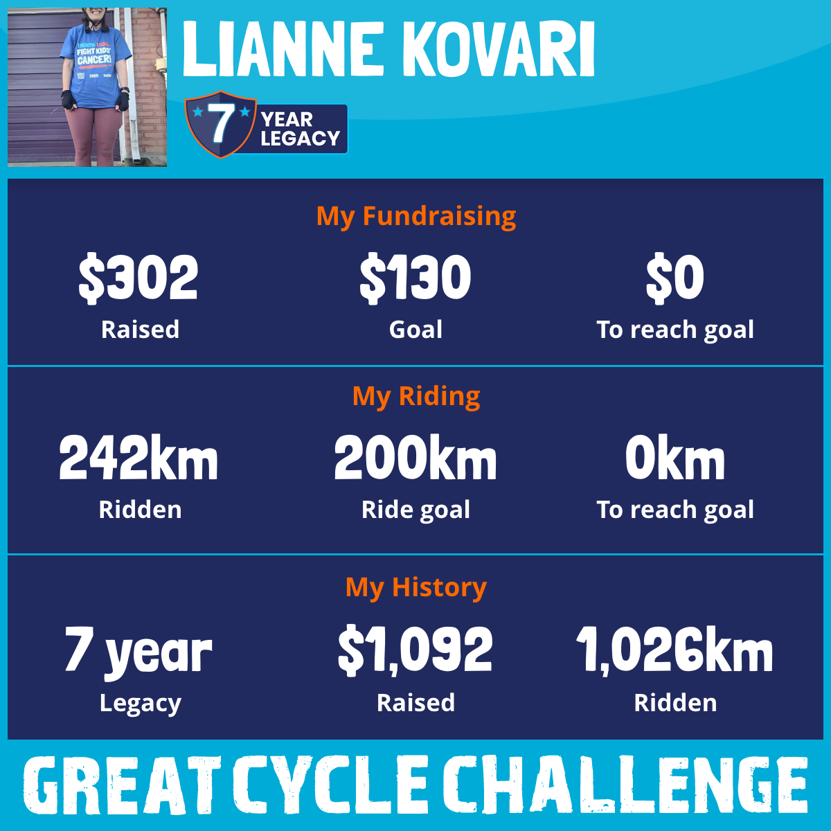 This August, I am taking part in the Great Cycle Challenge to fight kids' cancer!