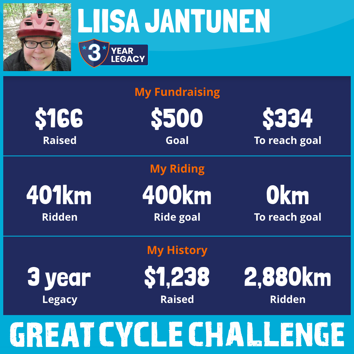 I am riding 400 km for my friend, Abbey!. Please sponsor me and support my challenge to fight kids' cancer and save little lives.