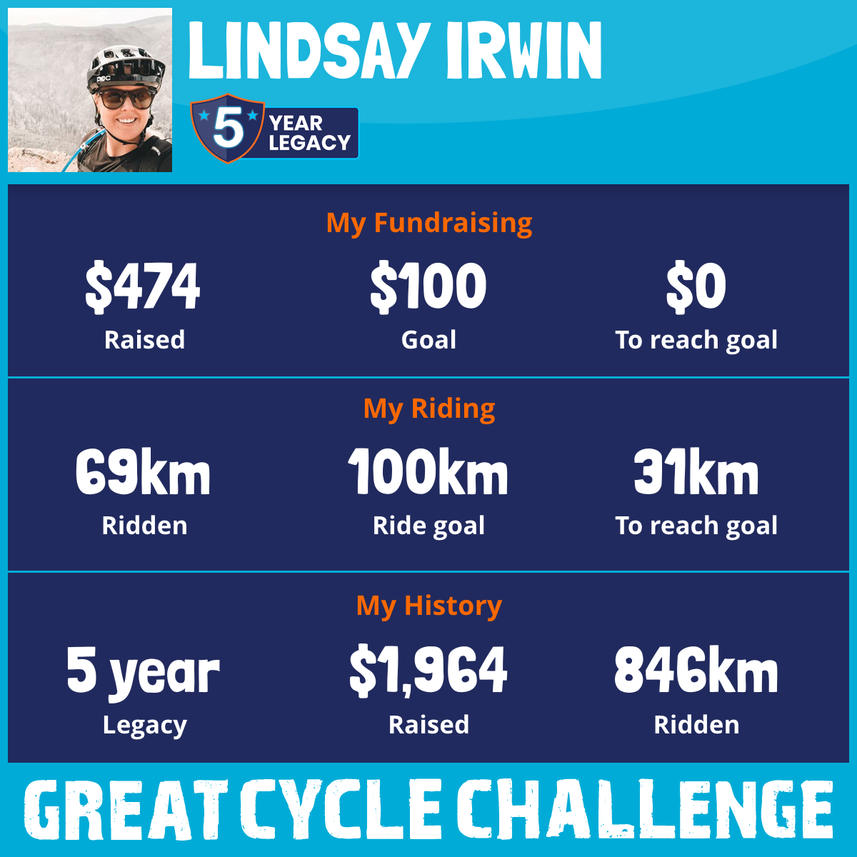 69 km Ridden$474 Raised2025