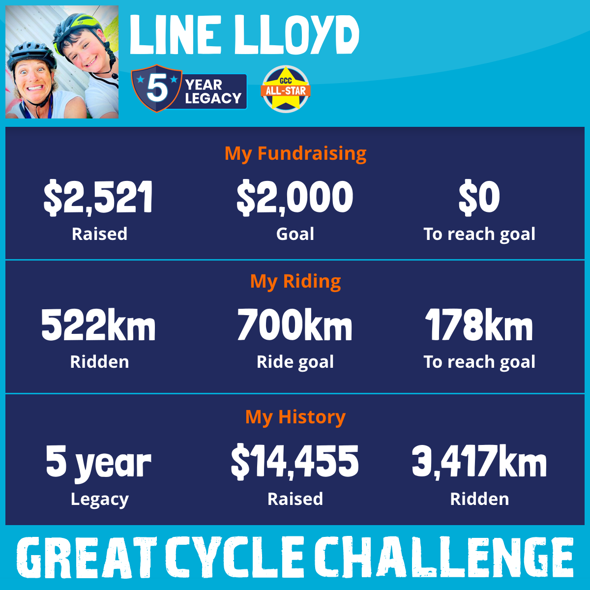 This August, kai and I taking part in the Great Cycle Challenge to fight kids' cancer!