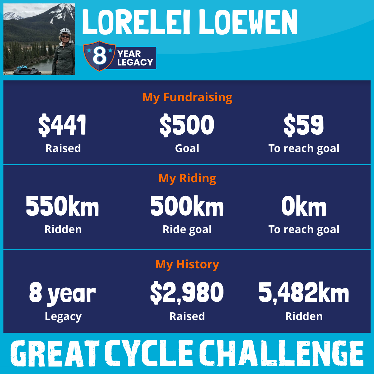 I am riding 500 km in memory of Laura Janzen. Please sponsor me and support my challenge to fight kids' cancer and save little lives.