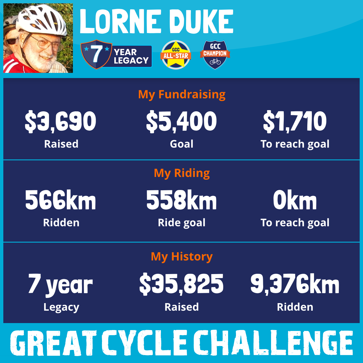 This August I am participating in the Great Cycle Challenge 2025 to fight kids' cancer! This is my seventh Challenge.