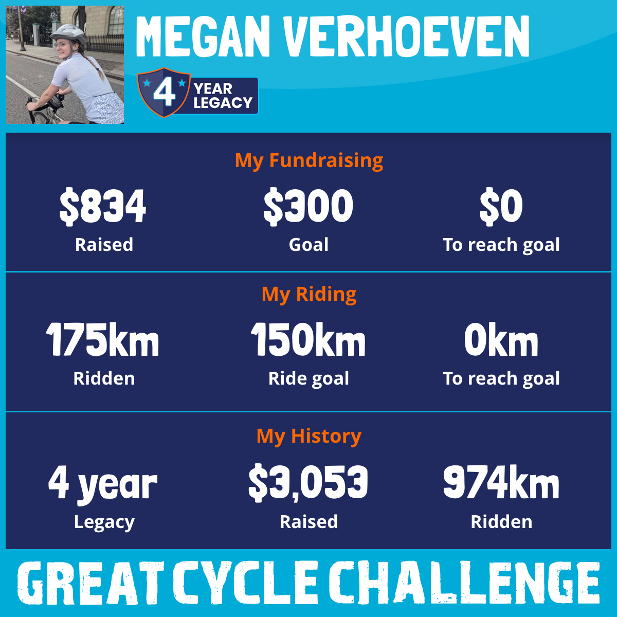 Last August I rode 312km and raised $866! So thank you again to all of my sponsors.