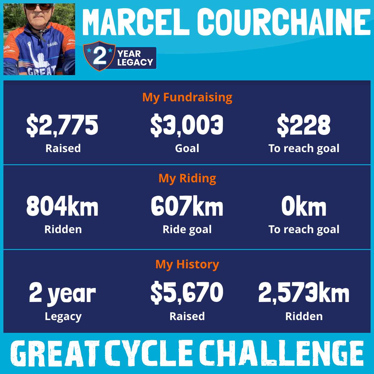 I have reached my cycling goal but, unfortunately I haven't reached my donation goal but that won't stop me from cycling. I hope to cycle over 600 km and hope to exceed both my goals. Thanks for your support.