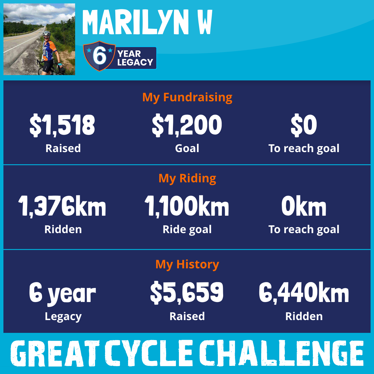 1,058 km Ridden$769 Raised2021