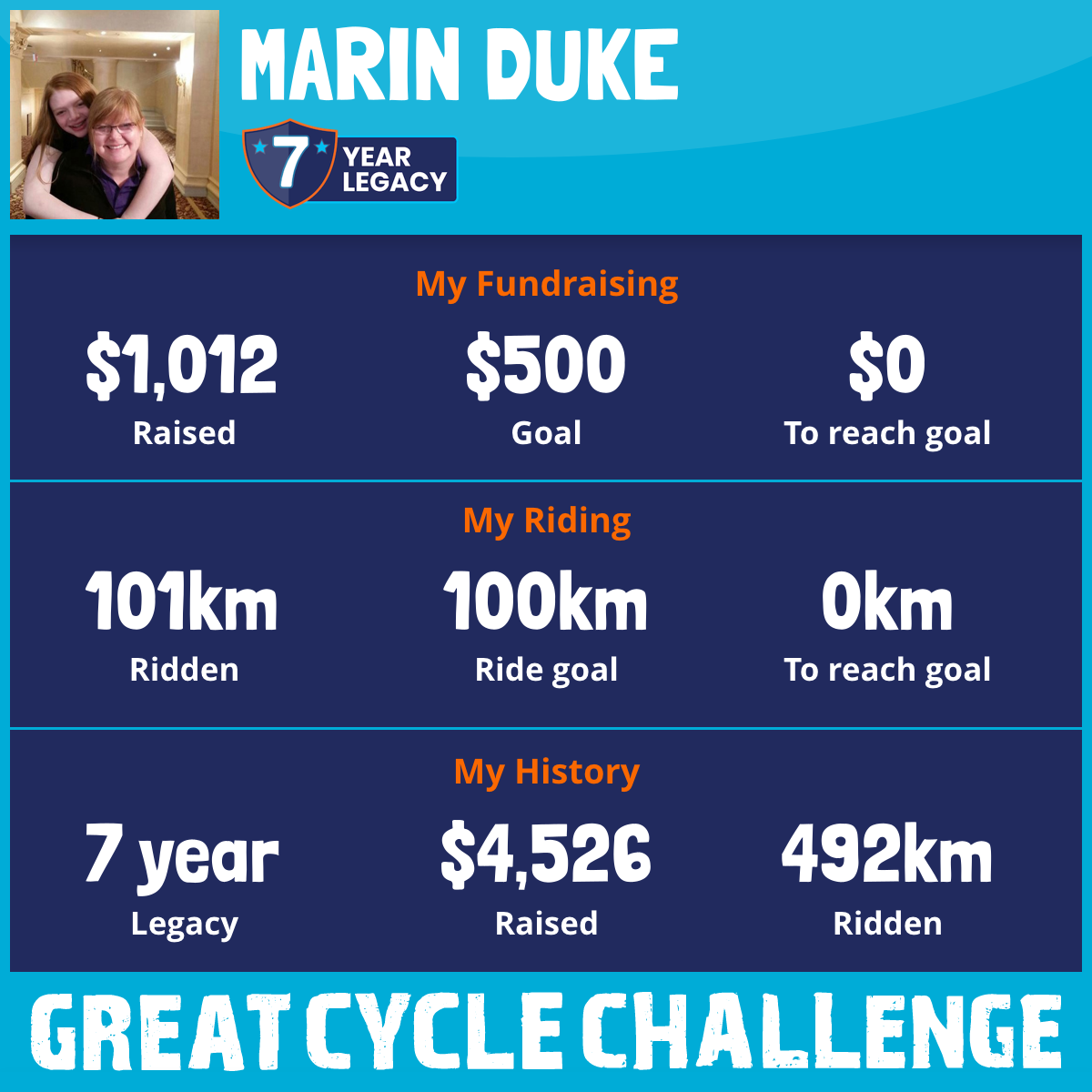 101 km Ridden$1,200 Raised2024