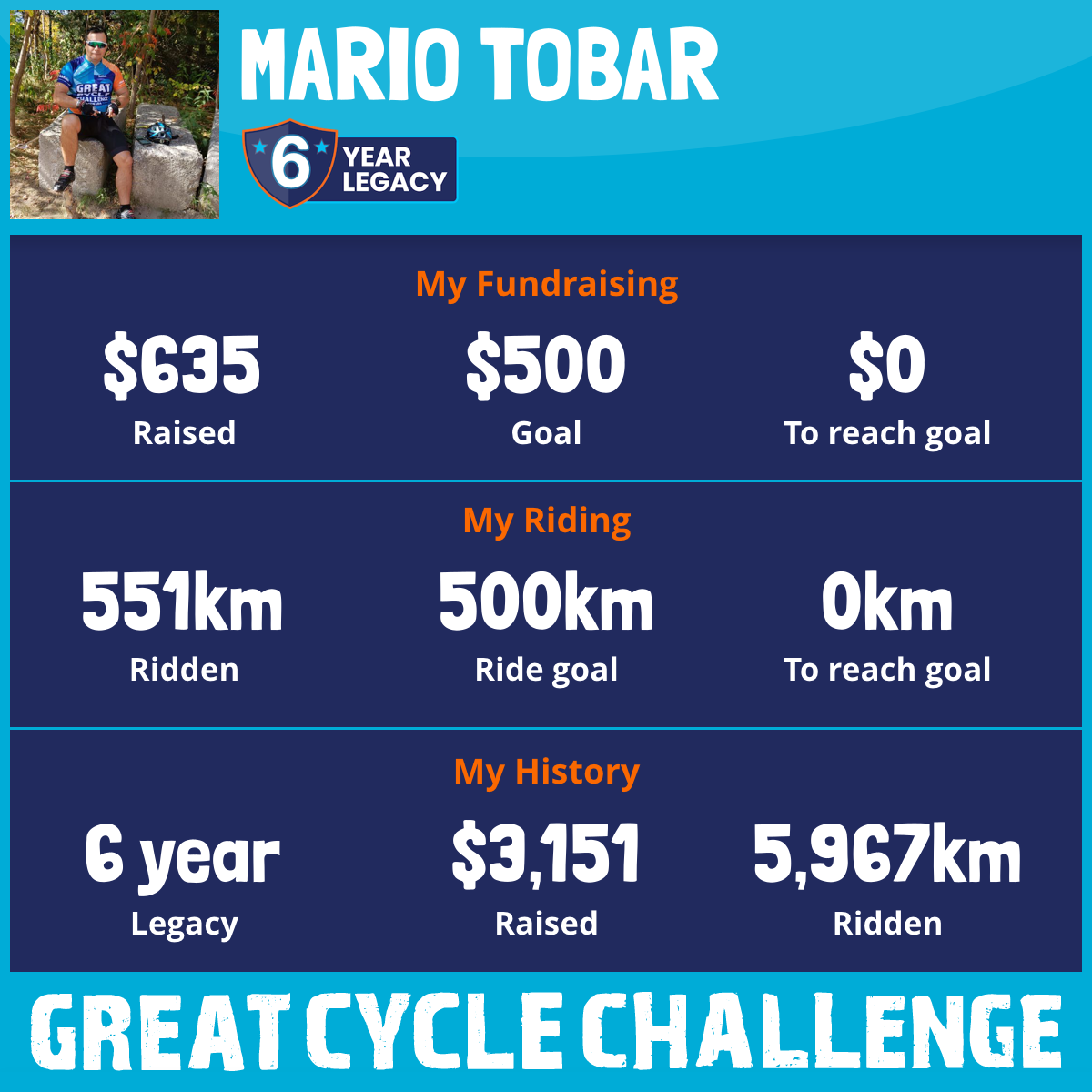 Why? Every year, over 1,700 children in Canada are diagnosed with cancer, the leading cause of death from disease among Canadian children. I'm riding to make a difference in their lives and offer crucial support. My ride is also dedicated to my stepmother, Chela, as she begins her own cancer journey, and in loving memory of my friend and brother-in-law, Cesar Hugo Teheran, who we lost to this disease