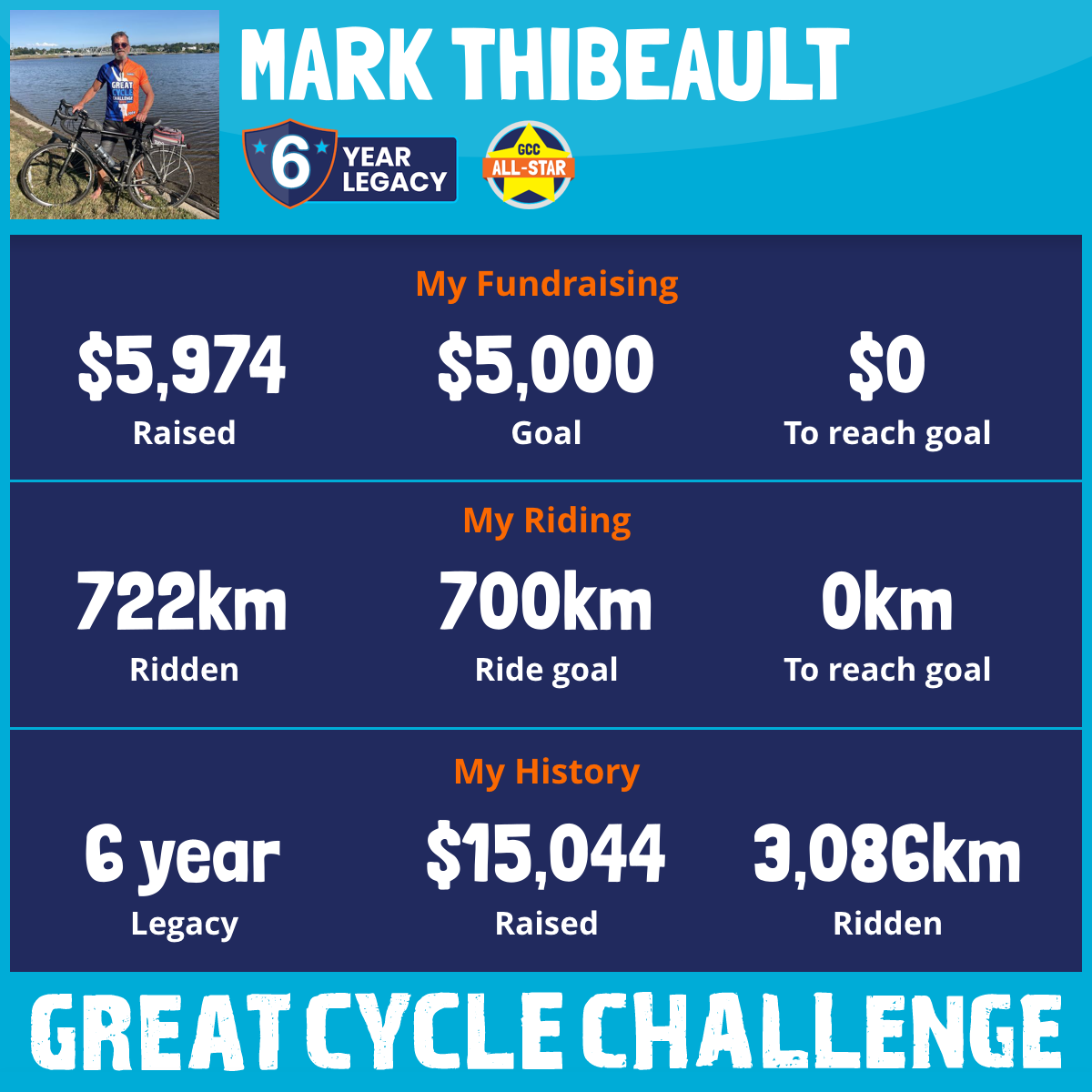 722 km Ridden$5,974 Raised2025