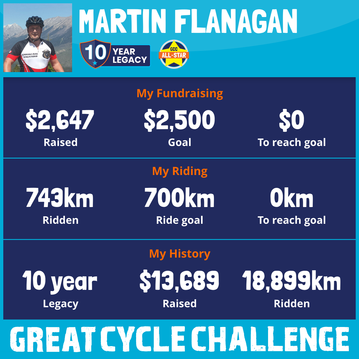 This is my 11th year and I am taking part in the Great Cycle Challenge to fight kids' cancer.