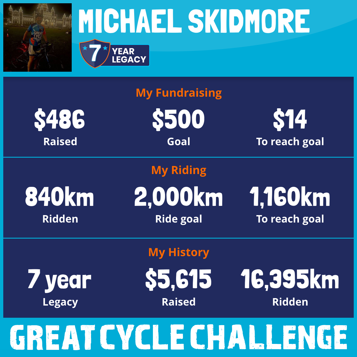 I am riding 2,000 km in memory of Norm Rudden. Please sponsor me and support my challenge to fight kids' cancer and save little lives.