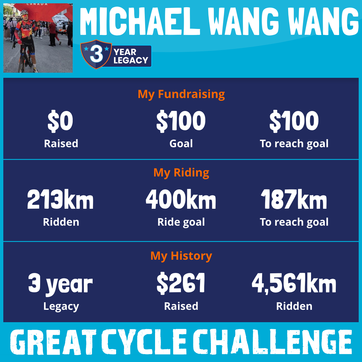 1,907 km Ridden$43 Raised2023