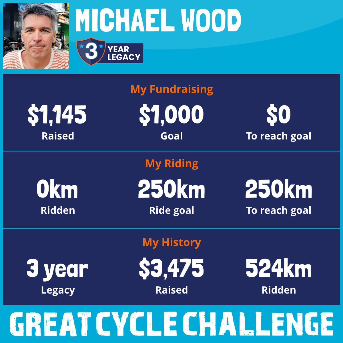 302 km Ridden$1,195 Raised2021