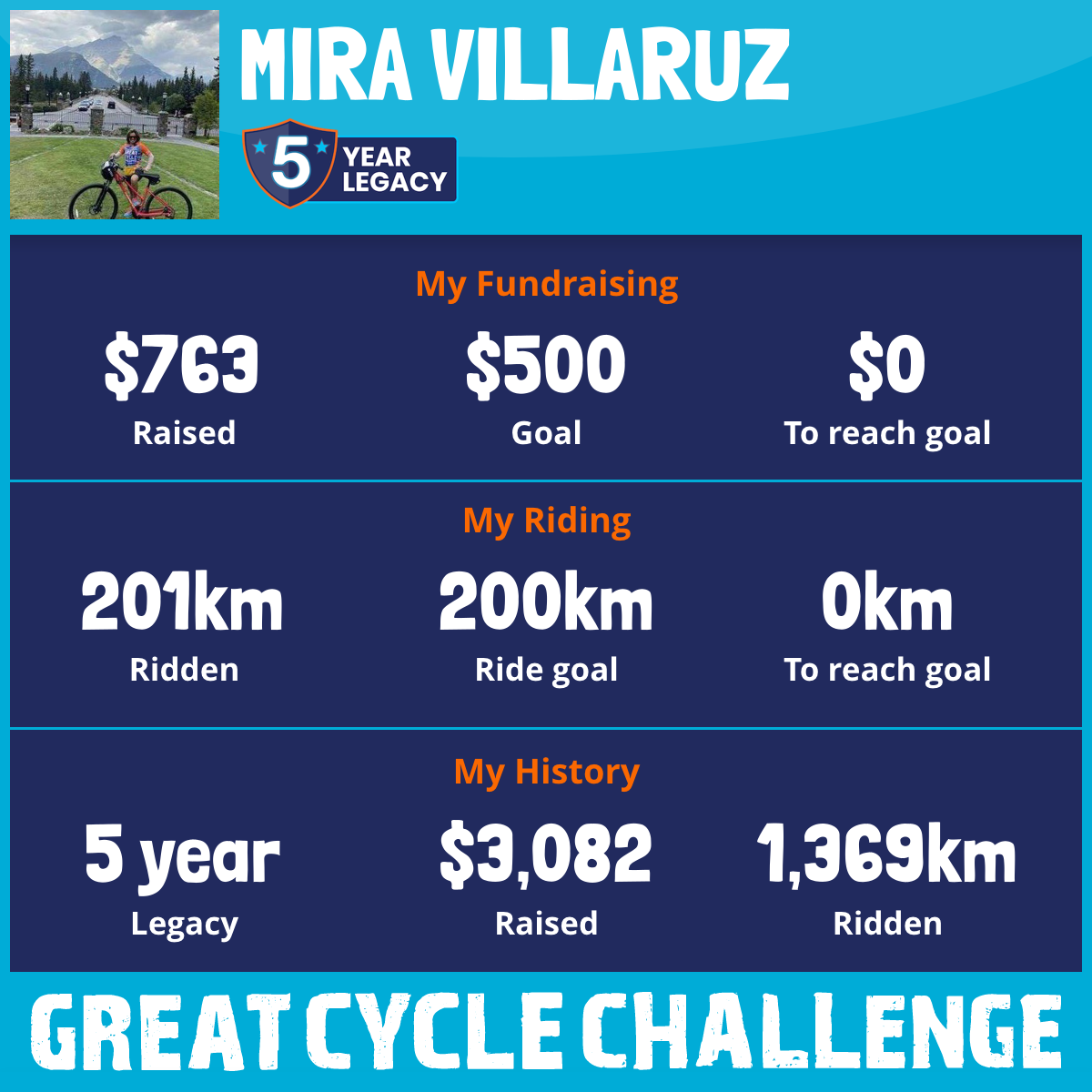 201 km Ridden$763 Raised2025