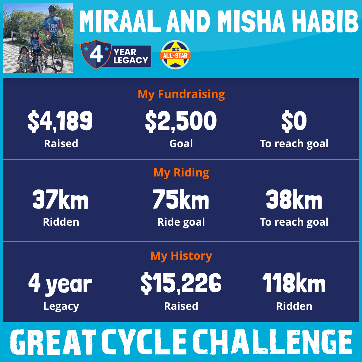 This summer, with my sister Misha, my Nana, and my family and friends , I am taking part in the Great Cycle Challenge to fight kids' cancer!