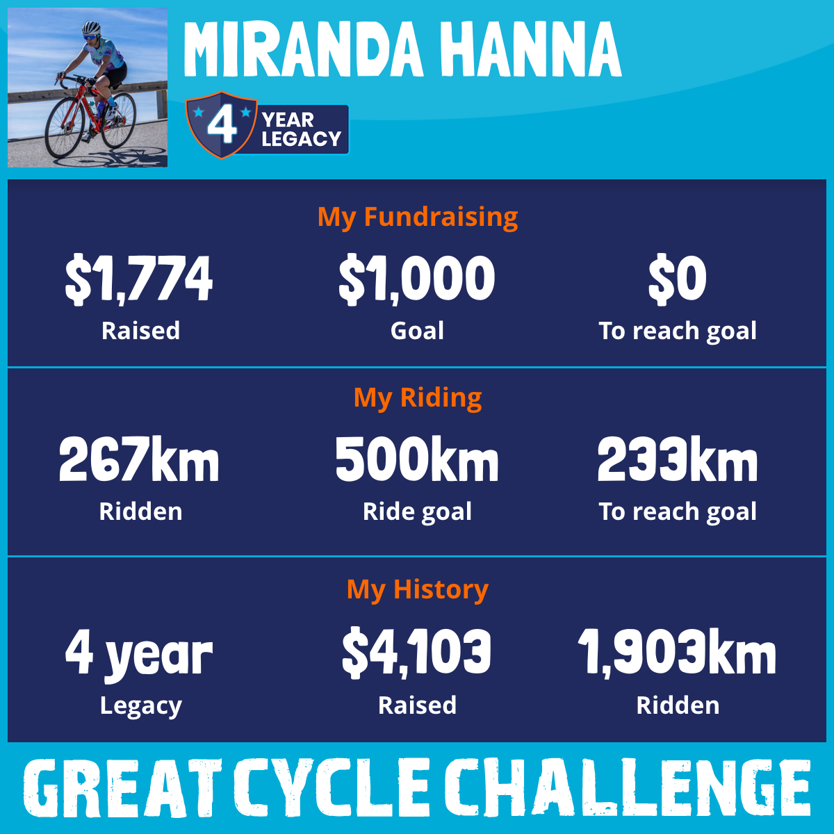 This August, I am taking part in the Great Cycle Challenge to fight kid's cancer. I don't think there's many who have not been impacted by cancer, whether it's a child or adult, mother, brother, friend, and on and on.