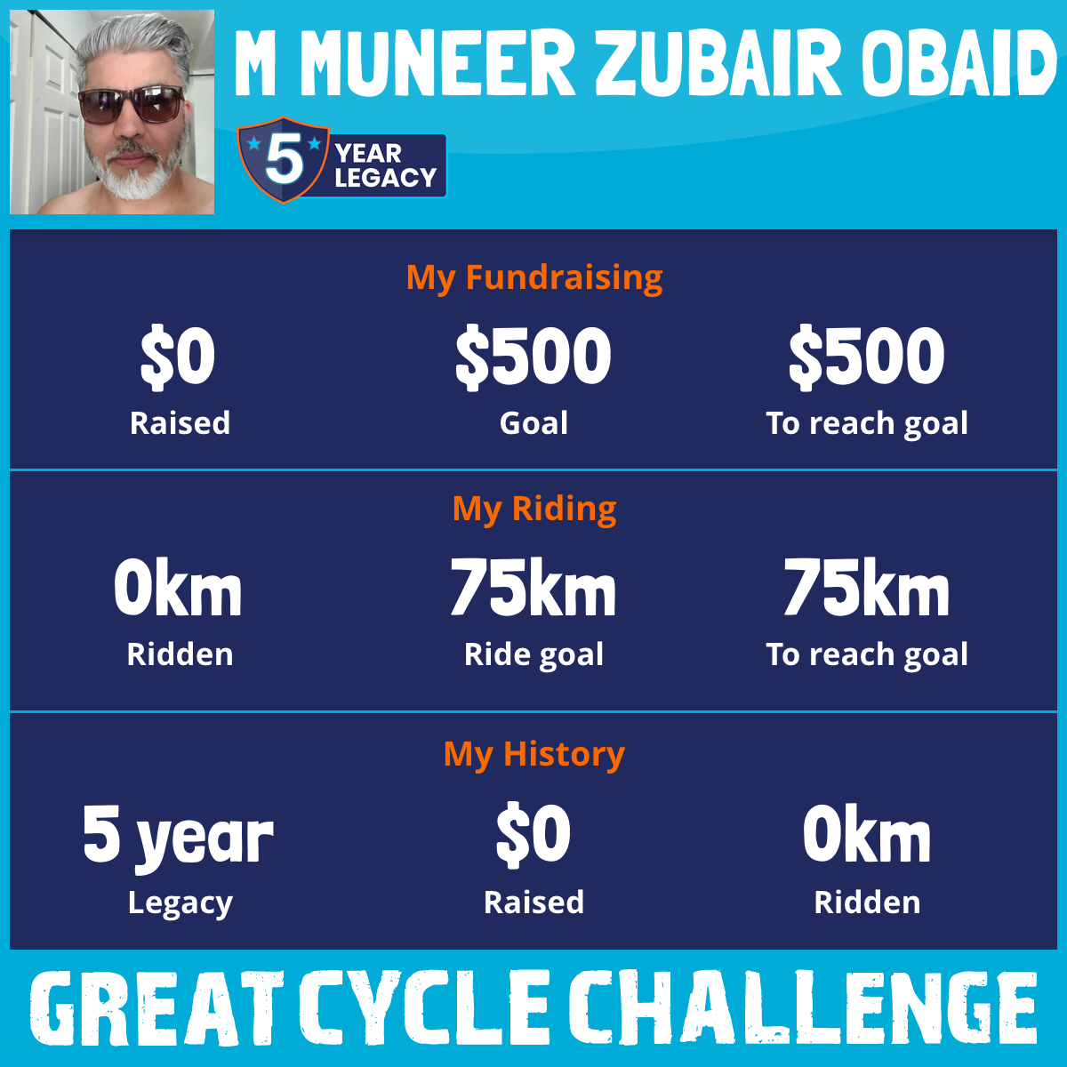 I've Ridden 0.0 km ? My goal is 75 km