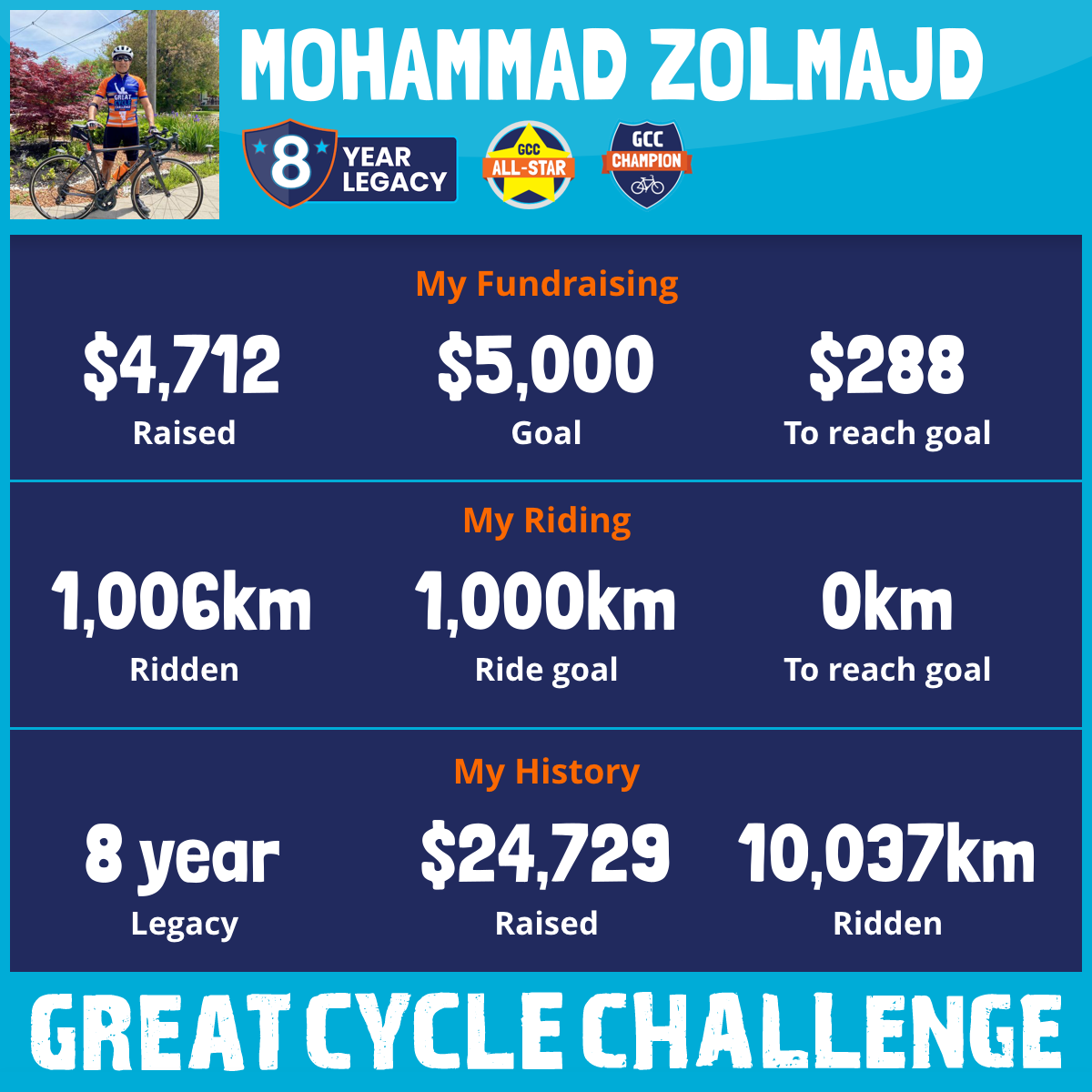 1,207 km Ridden$5,626 Raised2025