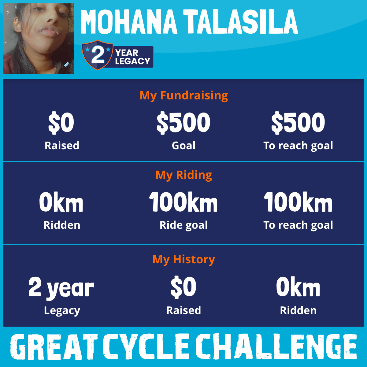 I've raised $0 My goal is $500 Donate Now