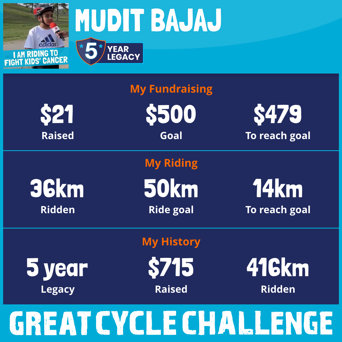 Hi everyone, it’s Mudit here. This August, I am taking part in the Great Cycle Challenge to fight kids' cancer!