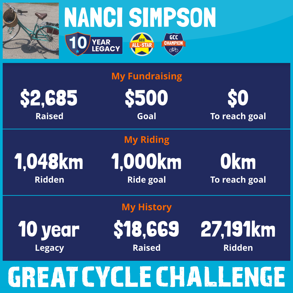 4,011 km Ridden$1,600 Raised2020