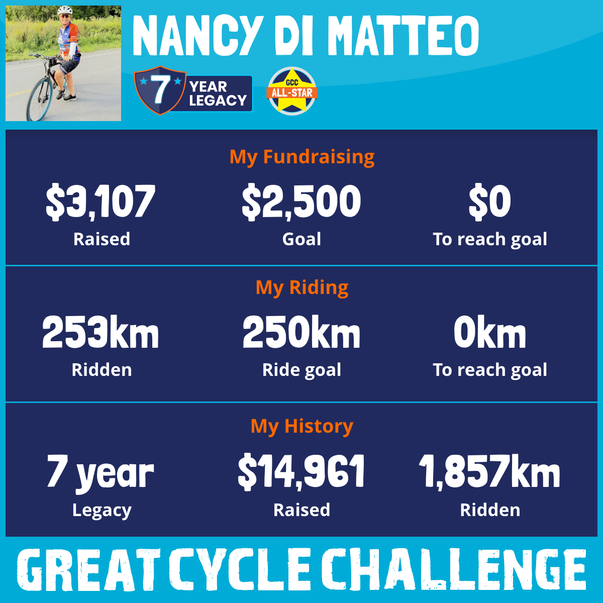 This August, will be my 7th year taking part in the Great Cycle Challenge to fight kids' cancer!