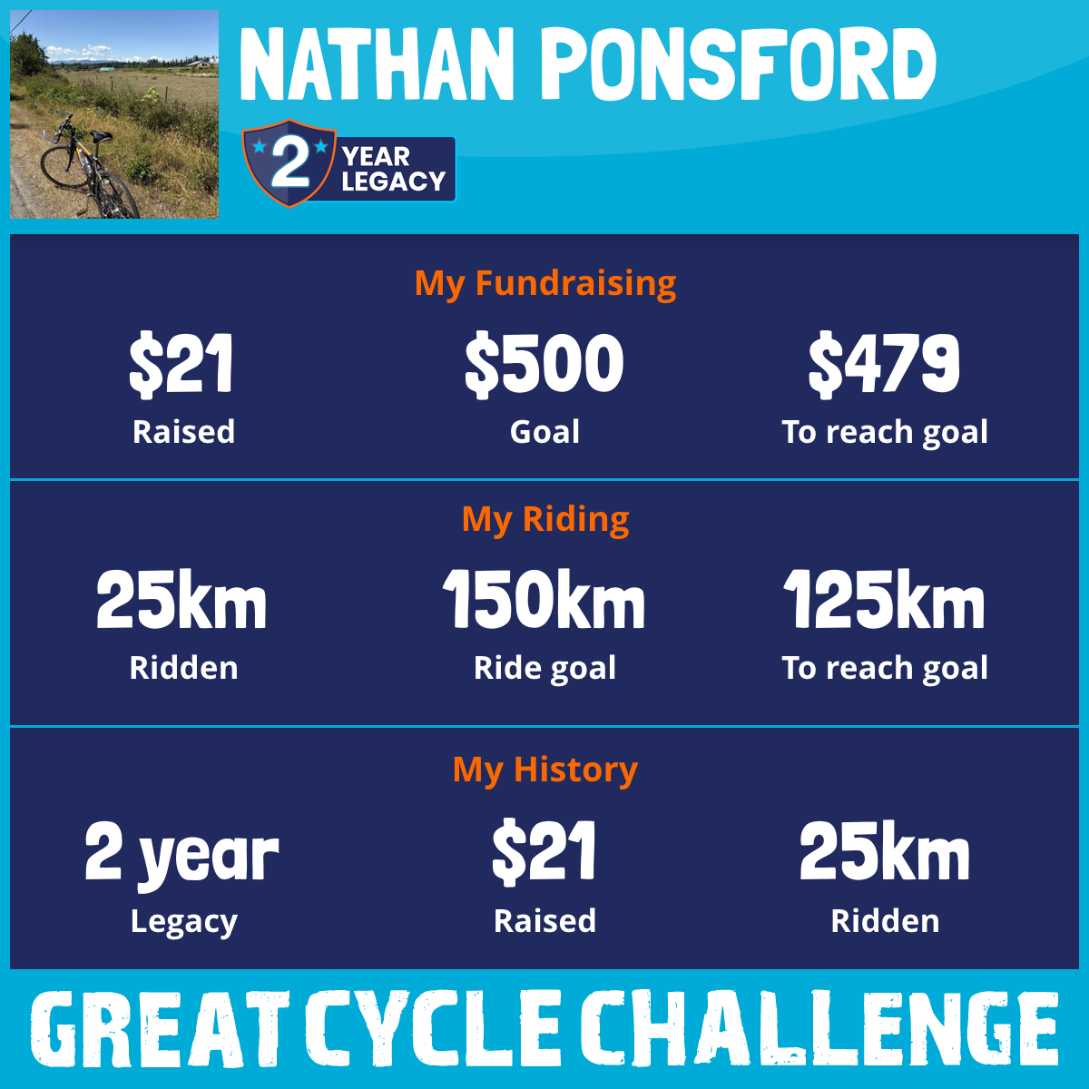 25 km Ridden$21 Raised2025
