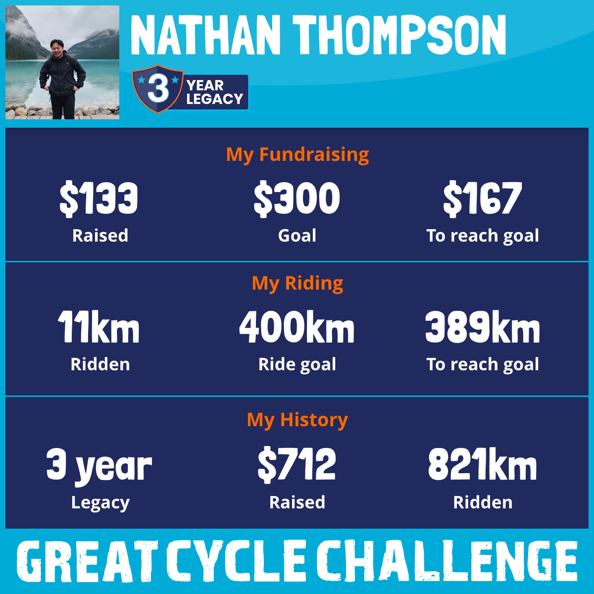 404 km Ridden$329 Raised2023
