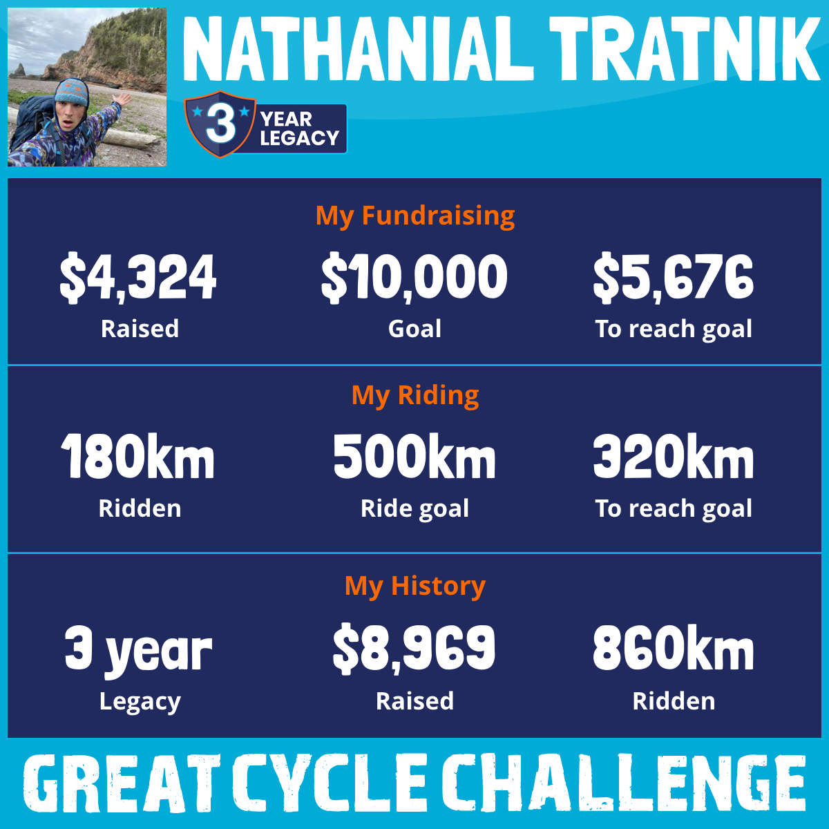 Throughout August, I (and so many others) take part in the Great Cycle Challenge to fight kids' cancer. This year, I have ambitiously set a self-imposed objective of $10,000 and cycle 500 km through the month of August.